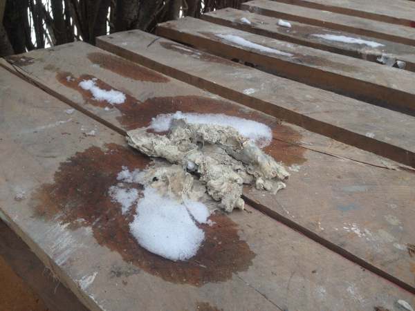 The skid above is an example of some form of industrial waste material (possibly old paint, or plastics) which you would want to avoid putting in your fireplace or wood stove. There is no telling what this material is, or what it could do if you inhaled it.