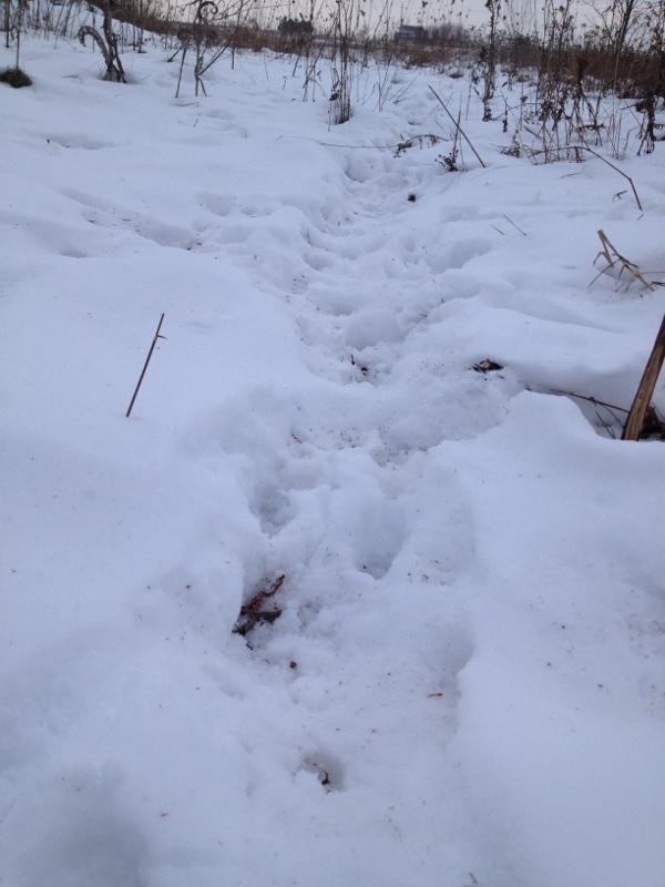 The muddy paths that hikers use, now covered with fresh snow, will often be littered with animal prints. Large open fields will often have tracks strewn about them.