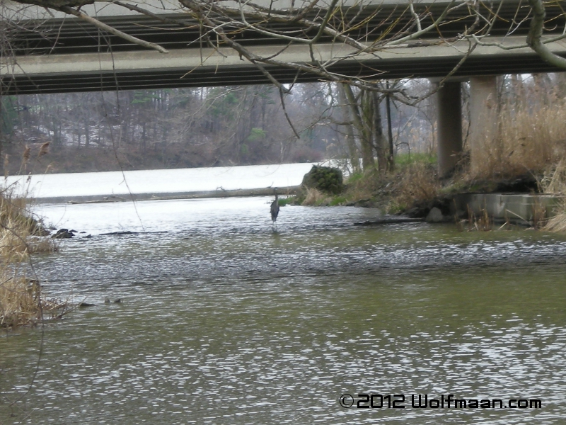 As the canoe drifted under the QEW highway, a Great Blue Heron stood proudly in the shallow water. I have seen him there several times over the years. It must be a prime fishing spot for him. When he saw us, he flew off into the distance to let us pass.