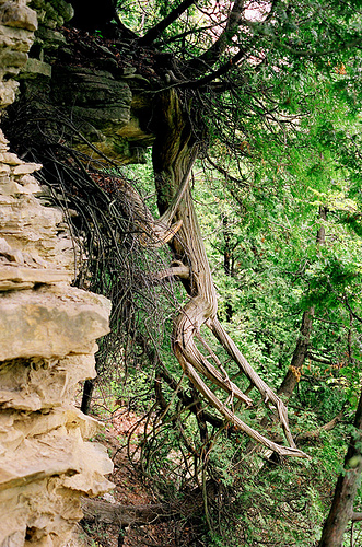 The trail followed beautiful Carolinian forest past ancient cedar trees. Although small in size, the cedar trees here are hundreds, if not thousands of years of age. The harsh growing conditions and thick rocks stunt their growth. You can see their age as the bark is all gnarled and twisted. A beautiful sight to see