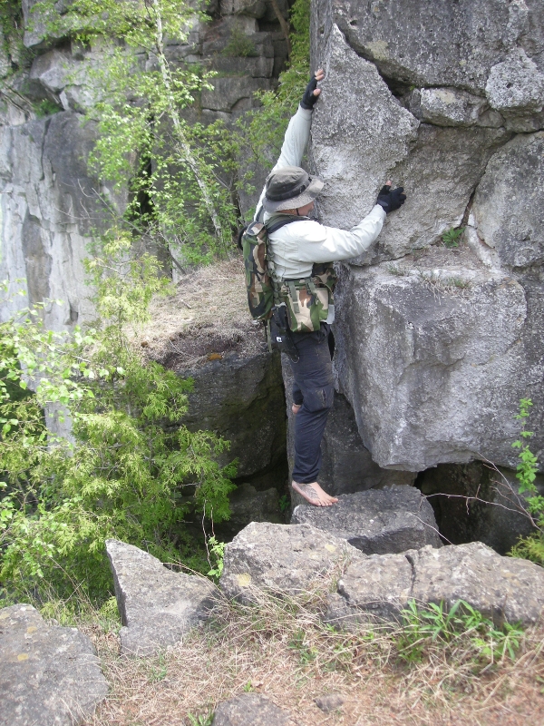 A small rocky outcropping looked like the perfect place to sit and eat lunch. The only problem was the flat outcropping was separated from the escarpment by a large, and deep crevasse.