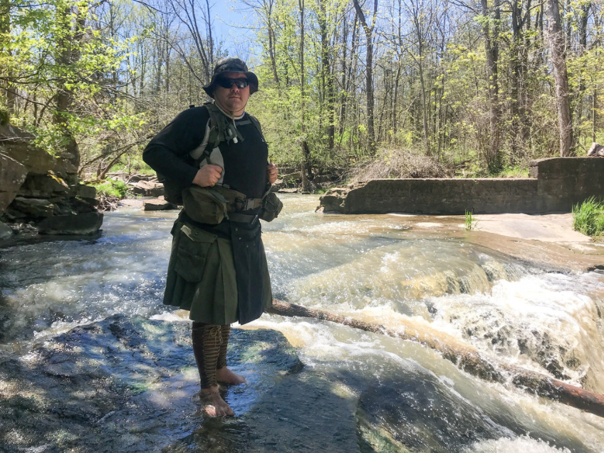 Around 15 years later, I started getting into wearing kilts. As a professional outdoors person, it seemed a natural progression for practicality and comfort in all manner of outdoor tasks. From canoe trips, to hiking adventures, to mundane yard work. All were a lot more fun and comfortable in the kilt.