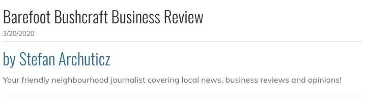 Barefoot Bushcraft is an outdoor education business specializing in archery, axe throwing and children’s camps. It operates year-round. In the winter months when the snow falls, there are cross country ski programs and dog sled programs.
