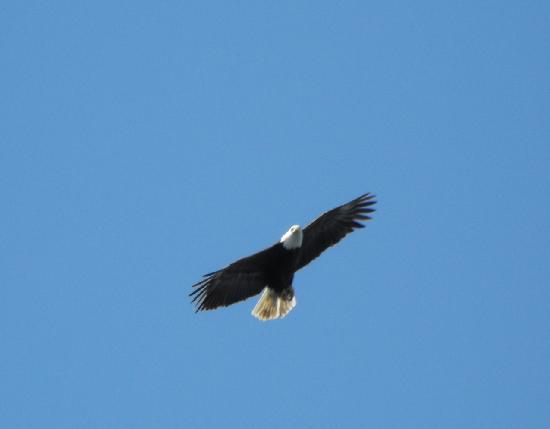 Moments later, in the distance I saw a large, majestic bird swoop down onto the water. His large dark body accented with bright white tail feathers, head, and a glistening yellow beak. I shouted to Sean “Look at that – a bald eagle!”