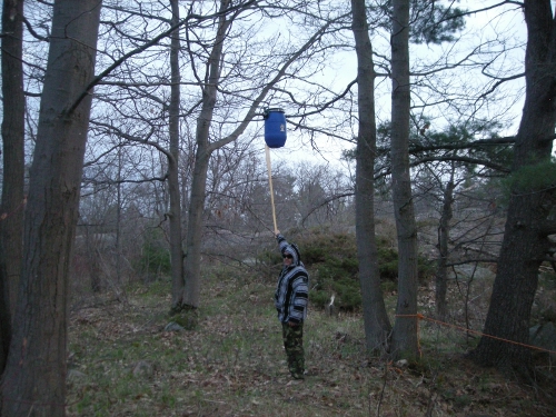 I set up camp, hung my large, blue food barrel 2m off the ground.