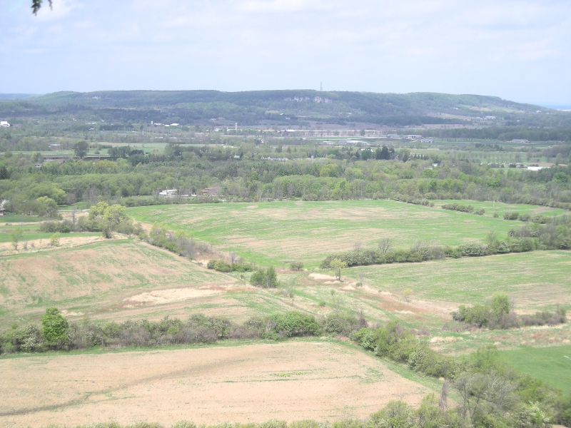 Heading off the QEW Highway, the road went through a small city then snaked its way up the side of the escarpment. The farmland, complete with old tractors sparkled in the sunlight, white rectangles known as “blazes” for the Bruce Trail criss cross the road as I head towards the conservation area.