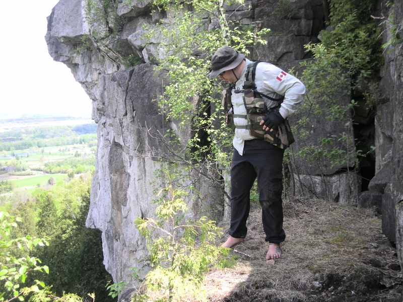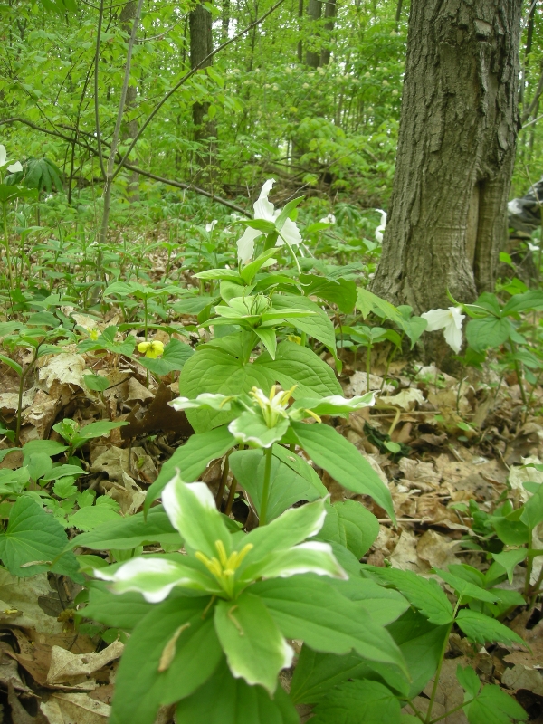 Heading away from the escarpment edge, Luka and I headed deep into the woods again. This time of year the woods are home to Ontario’s official flower – the Trillium. Many of the Trilliums here have caught a disease and made them genetically mutate. This mutation causes strange colour combinations including green stripes over their white leaves. Although beautiful to behold, these particular trilliums are diseased.